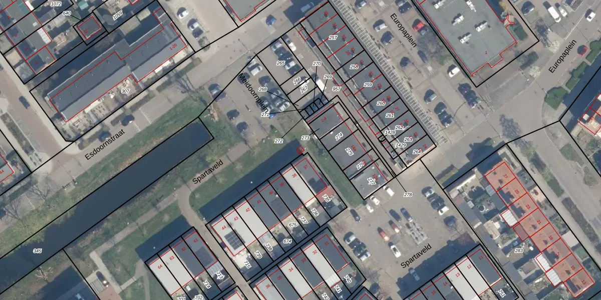 Het perceel waarop Spartaveld 37-z staat heeft een oppervlakte van 1,5 ha. Dit is een zeer groot perceel. De perceeloppervlakte wordt geregistreerd door het Kadaster. Gedetailleerde informatie over de maten van dit perceel kunt u vinden in het rapport Kadastrale kaart met maatvoering van Spartaveld 37-z.