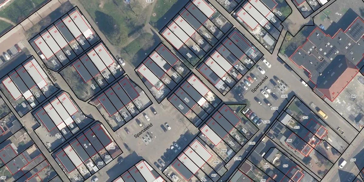 Het perceel waarop Spartaveld 71 staat heeft een oppervlakte van 109 m². Dit is een middelgroot perceel. De perceeloppervlakte wordt geregistreerd door het Kadaster. Gedetailleerde informatie over de maten van dit perceel kunt u vinden in het rapport Kadastrale kaart met maatvoering van Spartaveld 71.