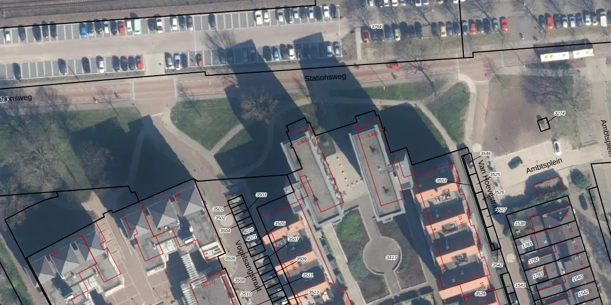 Het perceel waarop Stationsweg 111 staat heeft een oppervlakte van 7525 m². Dit is een zeer groot perceel. De perceeloppervlakte wordt geregistreerd door het Kadaster. Gedetailleerde informatie over de maten van dit perceel kunt u vinden in het rapport Kadastrale kaart met maatvoering van Stationsweg 111.