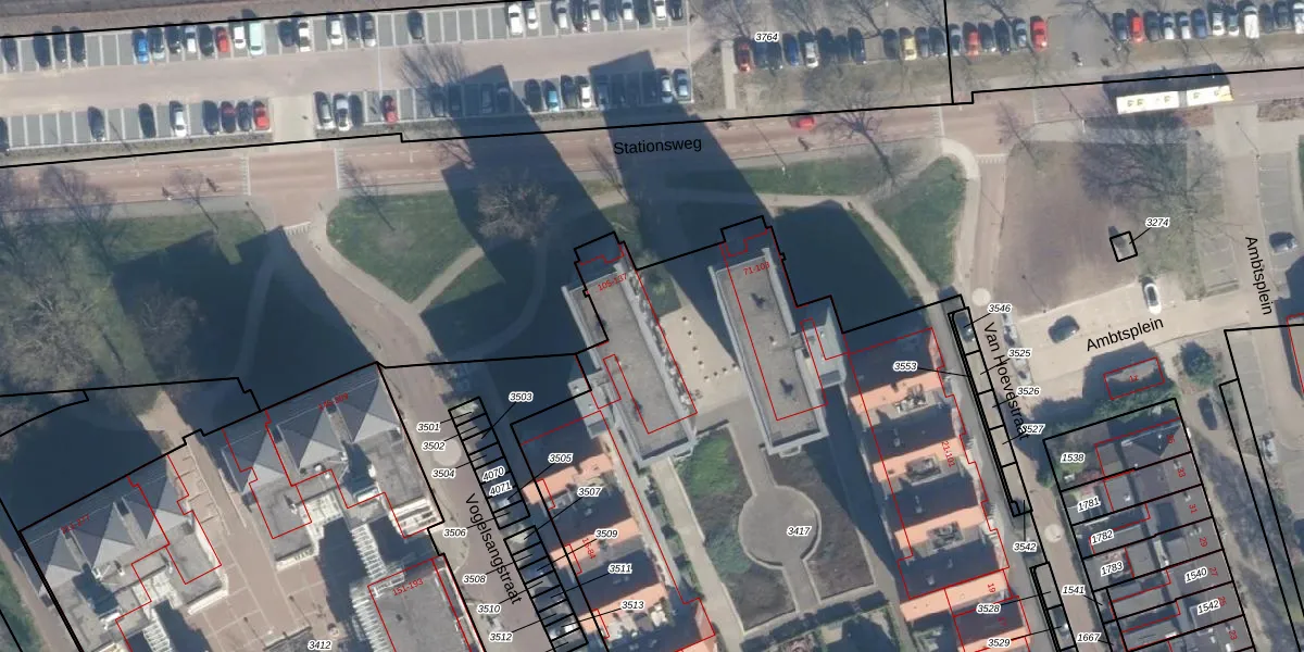 Het perceel waarop Stationsweg 121 staat heeft een oppervlakte van 7525 m². Dit is een zeer groot perceel. De perceeloppervlakte wordt geregistreerd door het Kadaster. Gedetailleerde informatie over de maten van dit perceel kunt u vinden in het rapport Kadastrale kaart met maatvoering van Stationsweg 121.