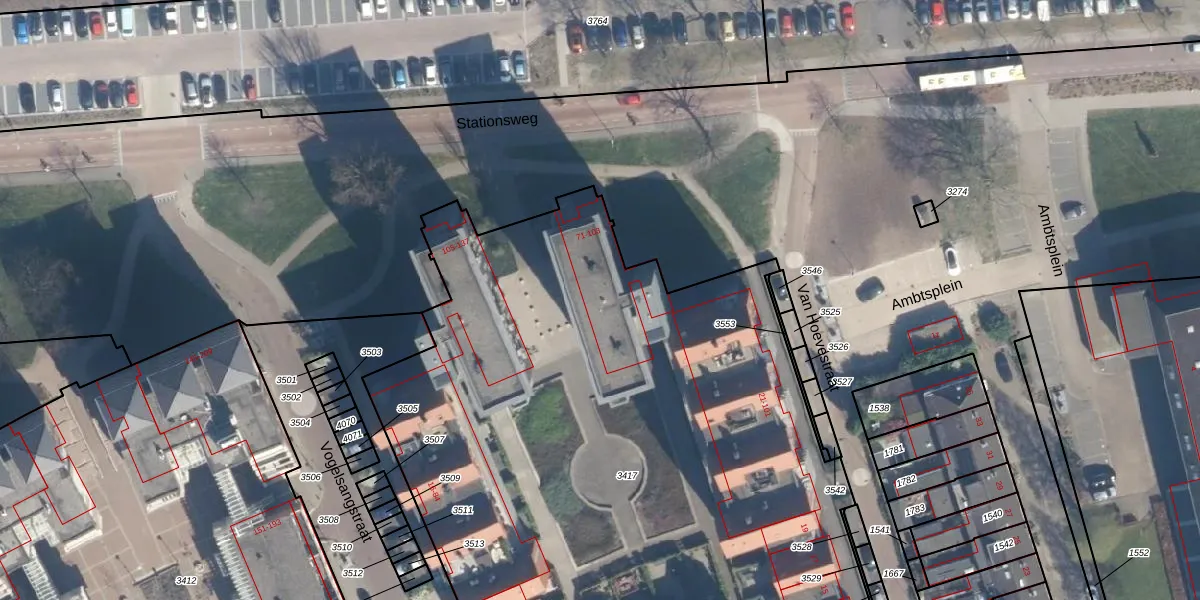 Het perceel waarop Stationsweg 91 staat heeft een oppervlakte van 7525 m². Dit is een zeer groot perceel. De perceeloppervlakte wordt geregistreerd door het Kadaster. Gedetailleerde informatie over de maten van dit perceel kunt u vinden in het rapport Kadastrale kaart met maatvoering van Stationsweg 91.