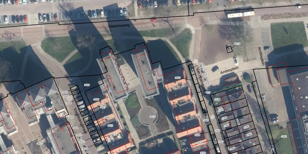 Het perceel waarop Stationsweg 97 staat heeft een oppervlakte van 7525 m². Dit is een zeer groot perceel. De perceeloppervlakte wordt geregistreerd door het Kadaster. Gedetailleerde informatie over de maten van dit perceel kunt u vinden in het rapport Kadastrale kaart met maatvoering van Stationsweg 97.
