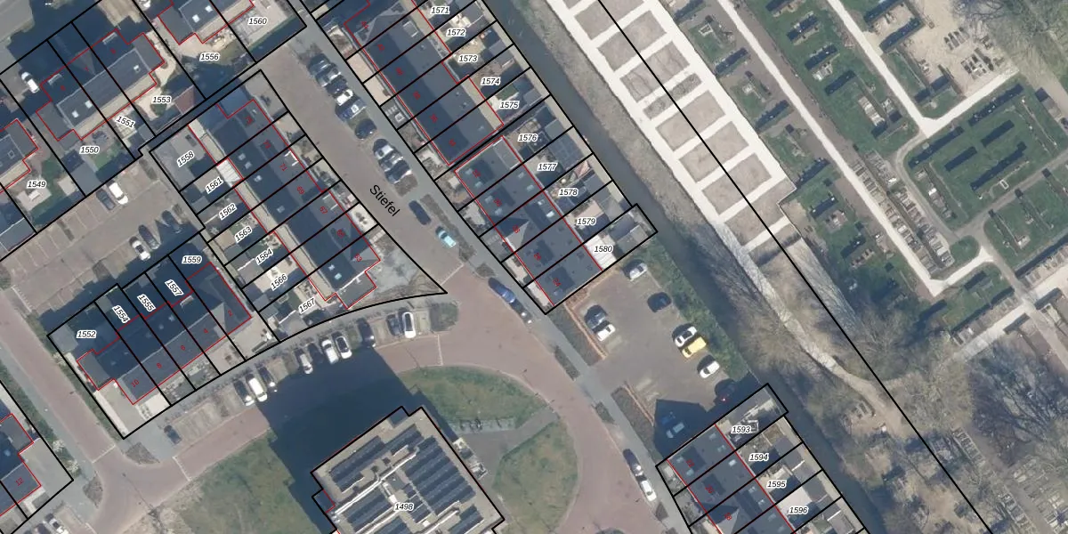 Het perceel waarop Stiefel 26 staat heeft een oppervlakte van 162 m². Dit is een middelgroot perceel. De perceeloppervlakte wordt geregistreerd door het Kadaster. Gedetailleerde informatie over de maten van dit perceel kunt u vinden in het rapport Kadastrale kaart met maatvoering van Stiefel 26.