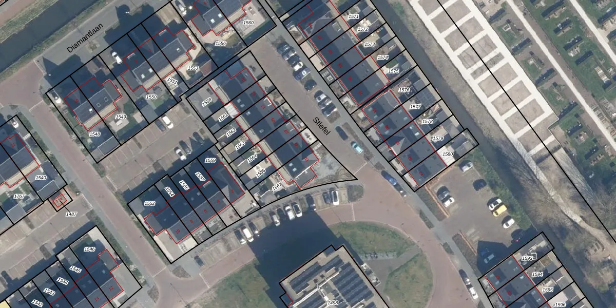 Het perceel waarop Stiefel 63 staat heeft een oppervlakte van 318 m². Dit is een groot perceel. De perceeloppervlakte wordt geregistreerd door het Kadaster. Gedetailleerde informatie over de maten van dit perceel kunt u vinden in het rapport Kadastrale kaart met maatvoering van Stiefel 63.