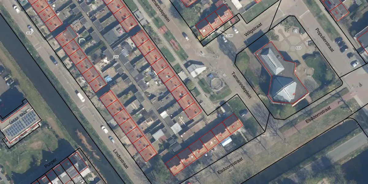 Het perceel waarop Tamarindeplein 5 staat heeft een oppervlakte van 7866 m². Dit is een zeer groot perceel. De perceeloppervlakte wordt geregistreerd door het Kadaster. Gedetailleerde informatie over de maten van dit perceel kunt u vinden in het rapport Kadastrale kaart met maatvoering van Tamarindeplein 5.