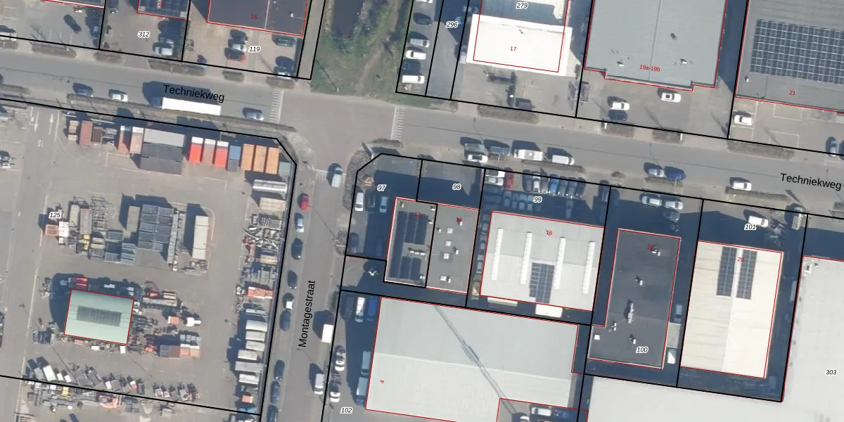 Het perceel waarop Techniekweg 12 staat heeft een oppervlakte van 484 m². Dit is een groot perceel. De perceeloppervlakte wordt geregistreerd door het Kadaster. Gedetailleerde informatie over de maten van dit perceel kunt u vinden in het rapport Kadastrale kaart met maatvoering van Techniekweg 12.