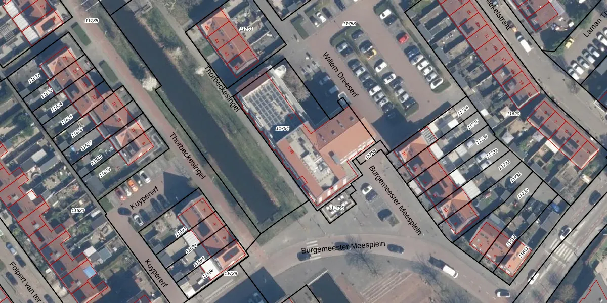 Het perceel waarop Thorbeckesingel 24 staat heeft een oppervlakte van 1106 m². Dit is een zeer groot perceel. De perceeloppervlakte wordt geregistreerd door het Kadaster. Gedetailleerde informatie over de maten van dit perceel kunt u vinden in het rapport Kadastrale kaart met maatvoering van Thorbeckesingel 24.
