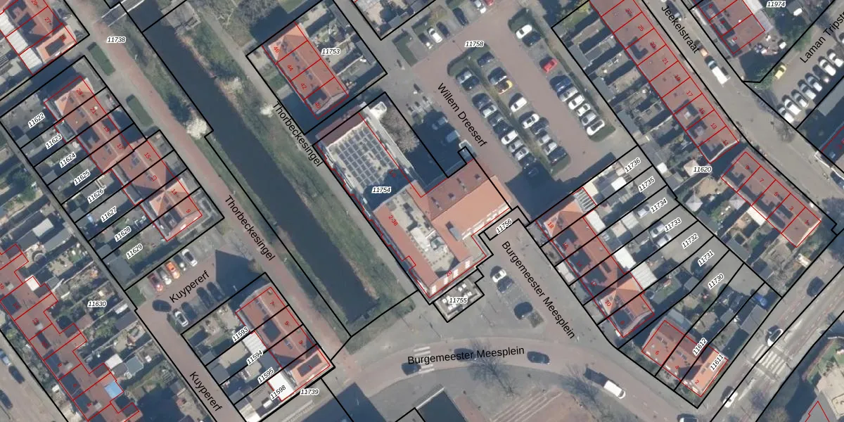 Het perceel waarop Thorbeckesingel 32 staat heeft een oppervlakte van 1106 m². Dit is een zeer groot perceel. De perceeloppervlakte wordt geregistreerd door het Kadaster. Gedetailleerde informatie over de maten van dit perceel kunt u vinden in het rapport Kadastrale kaart met maatvoering van Thorbeckesingel 32.