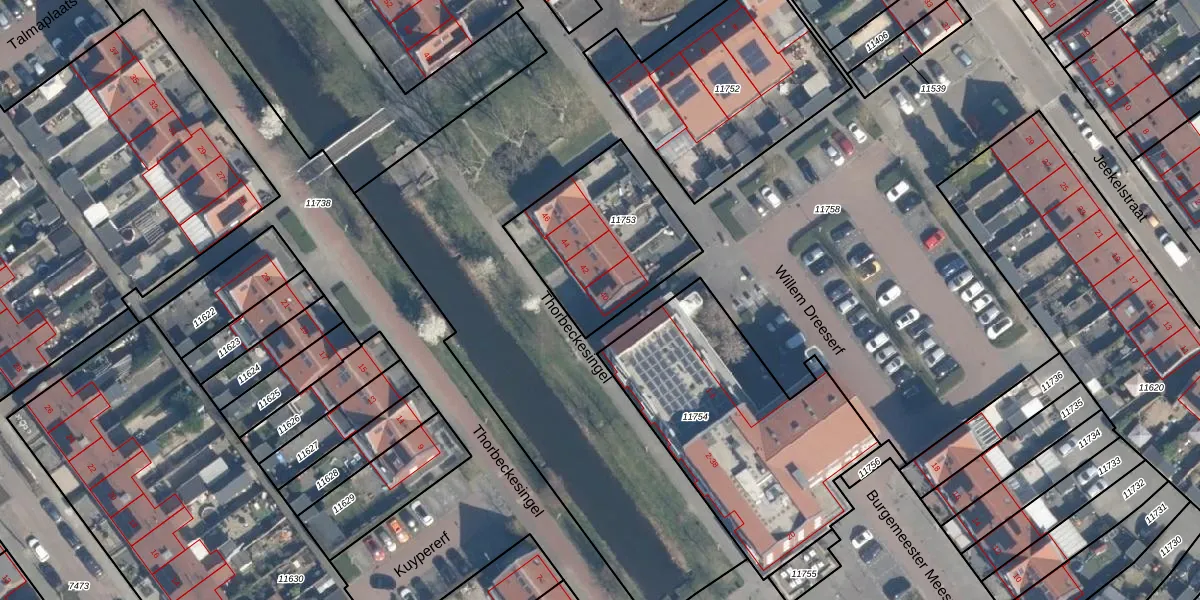 Het perceel waarop Thorbeckesingel 40 staat heeft een oppervlakte van 567 m². Dit is een groot perceel. De perceeloppervlakte wordt geregistreerd door het Kadaster. Gedetailleerde informatie over de maten van dit perceel kunt u vinden in het rapport Kadastrale kaart met maatvoering van Thorbeckesingel 40.