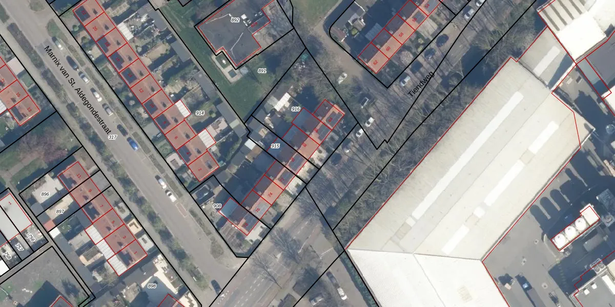 Tiendweg 68 is gelegen op kadastraal perceel LDM00D916. Deze kadastrale aanduiding is uniek en wordt gebruikt door het Kadaster om eigendomsrechten en andere zakelijke rechten vast te leggen. Het perceel maakt onderdeel uit van de kadastrale gemeente Leerdam.