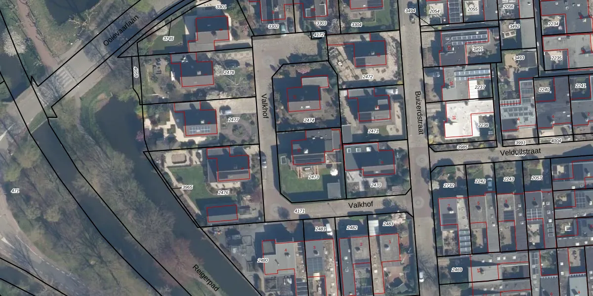 Gebruik de zoekbalk of klik op een perceel voor informatie over de adressen binnen dit perceel.