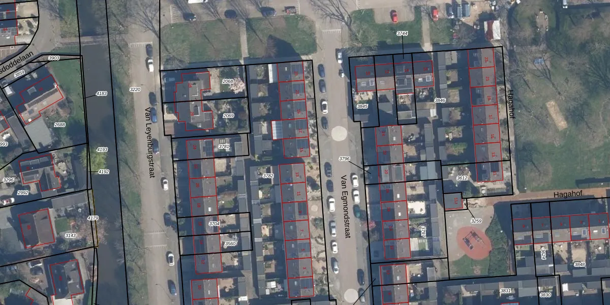 Het perceel waarop Van Egmondstraat 15 staat heeft een oppervlakte van 3495 m². Dit is een zeer groot perceel. De perceeloppervlakte wordt geregistreerd door het Kadaster. Gedetailleerde informatie over de maten van dit perceel kunt u vinden in het rapport Kadastrale kaart met maatvoering van Van Egmondstraat 15.