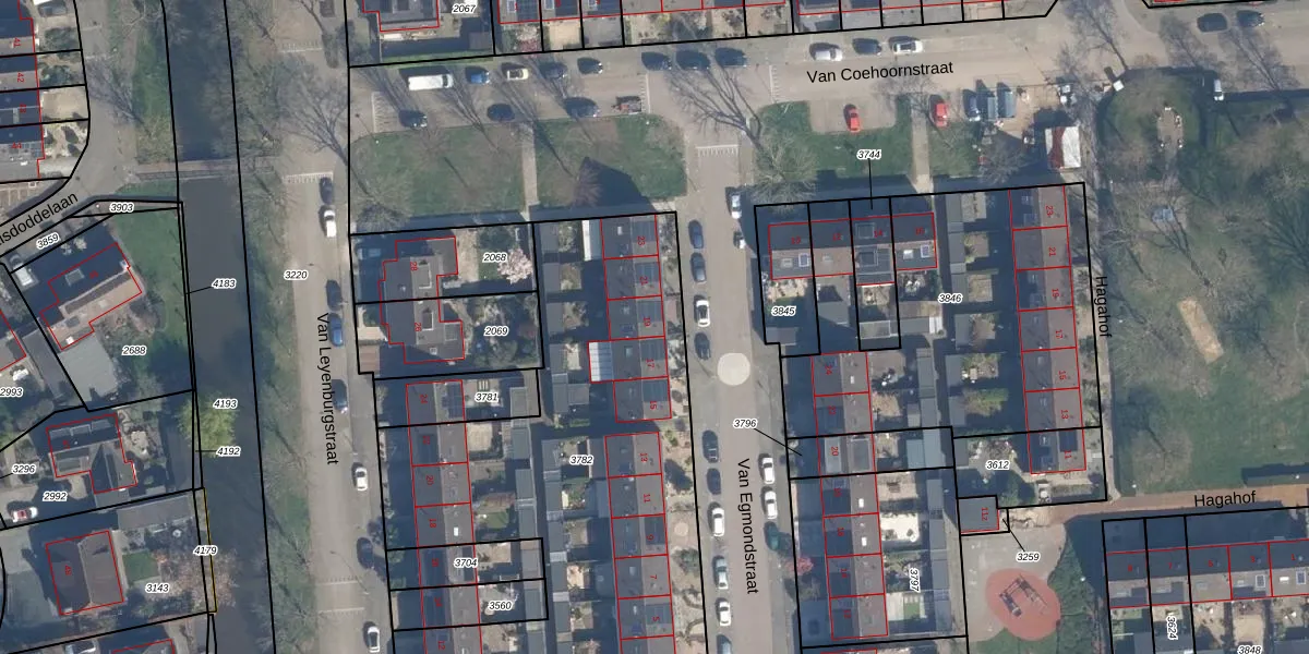 Het perceel waarop Van Egmondstraat 19 staat heeft een oppervlakte van 3495 m². Dit is een zeer groot perceel. De perceeloppervlakte wordt geregistreerd door het Kadaster. Gedetailleerde informatie over de maten van dit perceel kunt u vinden in het rapport Kadastrale kaart met maatvoering van Van Egmondstraat 19.