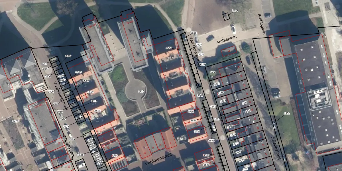 Het perceel waarop Van Hoevestraat 93 staat heeft een oppervlakte van 7525 m². Dit is een zeer groot perceel. De perceeloppervlakte wordt geregistreerd door het Kadaster. Gedetailleerde informatie over de maten van dit perceel kunt u vinden in het rapport Kadastrale kaart met maatvoering van Van Hoevestraat 93.