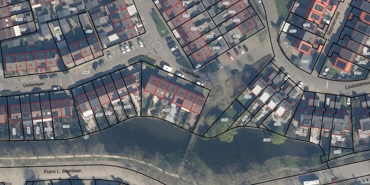Violierlaan 22 is gelegen op kadastraal perceel LDM00C3680. Deze kadastrale aanduiding is uniek en wordt gebruikt door het Kadaster om eigendomsrechten en andere zakelijke rechten vast te leggen. Het perceel maakt onderdeel uit van de kadastrale gemeente Leerdam.