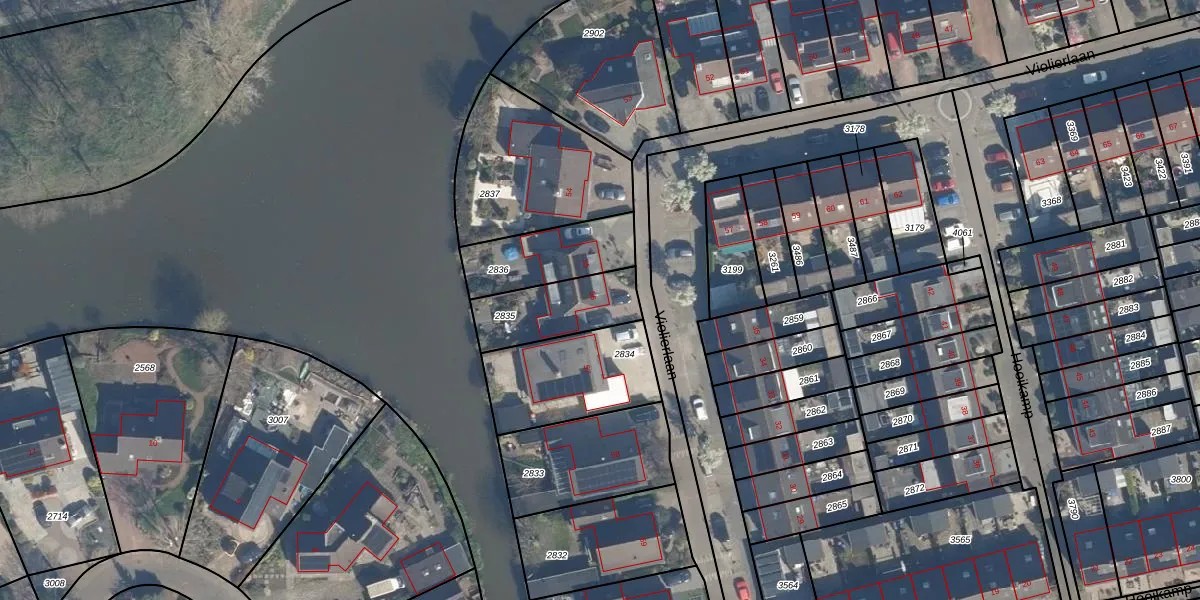 Gebruik de zoekbalk of klik op een perceel voor informatie over de adressen binnen dit perceel.