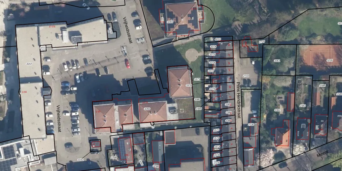 Het perceel waarop Vrijheidsstraat 18 staat heeft een oppervlakte van 1297 m². Dit is een zeer groot perceel. De perceeloppervlakte wordt geregistreerd door het Kadaster. Gedetailleerde informatie over de maten van dit perceel kunt u vinden in het rapport Kadastrale kaart met maatvoering van Vrijheidsstraat 18.