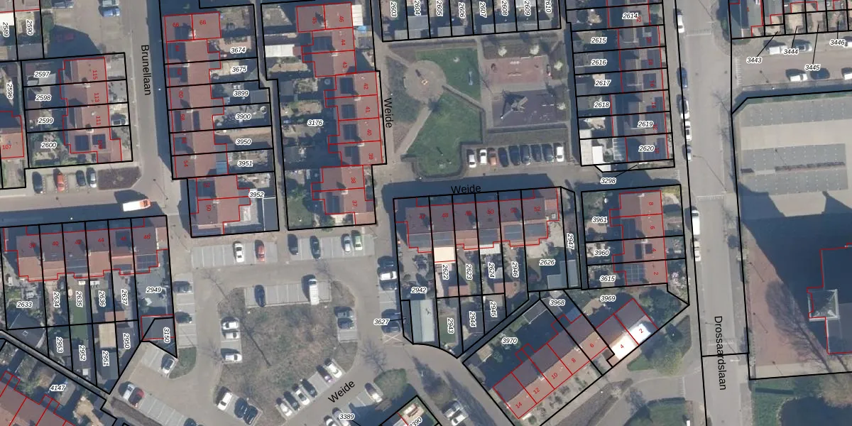 Het perceel waarop Weide 47 staat heeft een oppervlakte van 269 m². Dit is een middelgroot perceel. De perceeloppervlakte wordt geregistreerd door het Kadaster. Gedetailleerde informatie over de maten van dit perceel kunt u vinden in het rapport Kadastrale kaart met maatvoering van Weide 47.