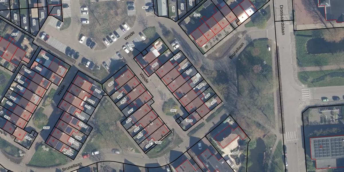 Gebruik de zoekbalk of klik op een perceel voor informatie over de adressen binnen dit perceel.