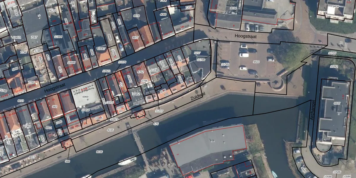 Het perceel waarop Zuidwal 6 staat heeft een oppervlakte van 66 m². Dit is een klein perceel. De perceeloppervlakte wordt geregistreerd door het Kadaster. Gedetailleerde informatie over de maten van dit perceel kunt u vinden in het rapport Kadastrale kaart met maatvoering van Zuidwal 6.