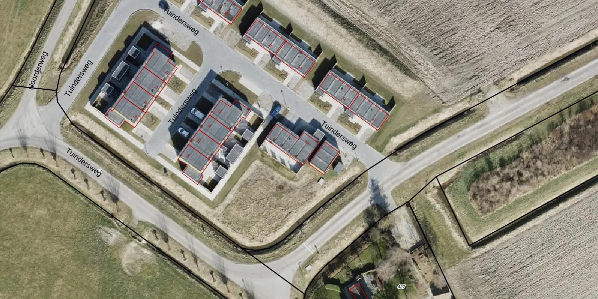 Het perceel waarop Tuindersweg 1-g staat heeft een oppervlakte van 2,8 ha. Dit is een zeer groot perceel. De perceeloppervlakte wordt geregistreerd door het Kadaster. Gedetailleerde informatie over de maten van dit perceel kunt u vinden in het rapport Kadastrale kaart met maatvoering van Tuindersweg 1-g.