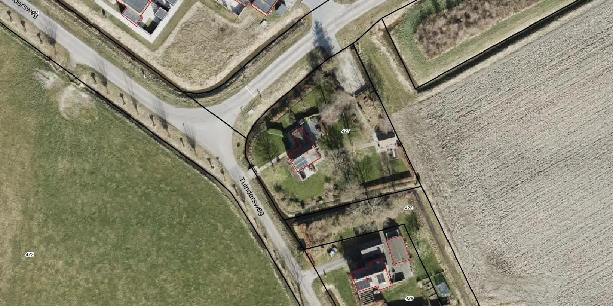Tuindersweg 3 is gelegen op kadastraal perceel ZAN00G427. Deze kadastrale aanduiding is uniek en wordt gebruikt door het Kadaster om eigendomsrechten en andere zakelijke rechten vast te leggen. Het perceel maakt onderdeel uit van de kadastrale gemeente 't Zandt.