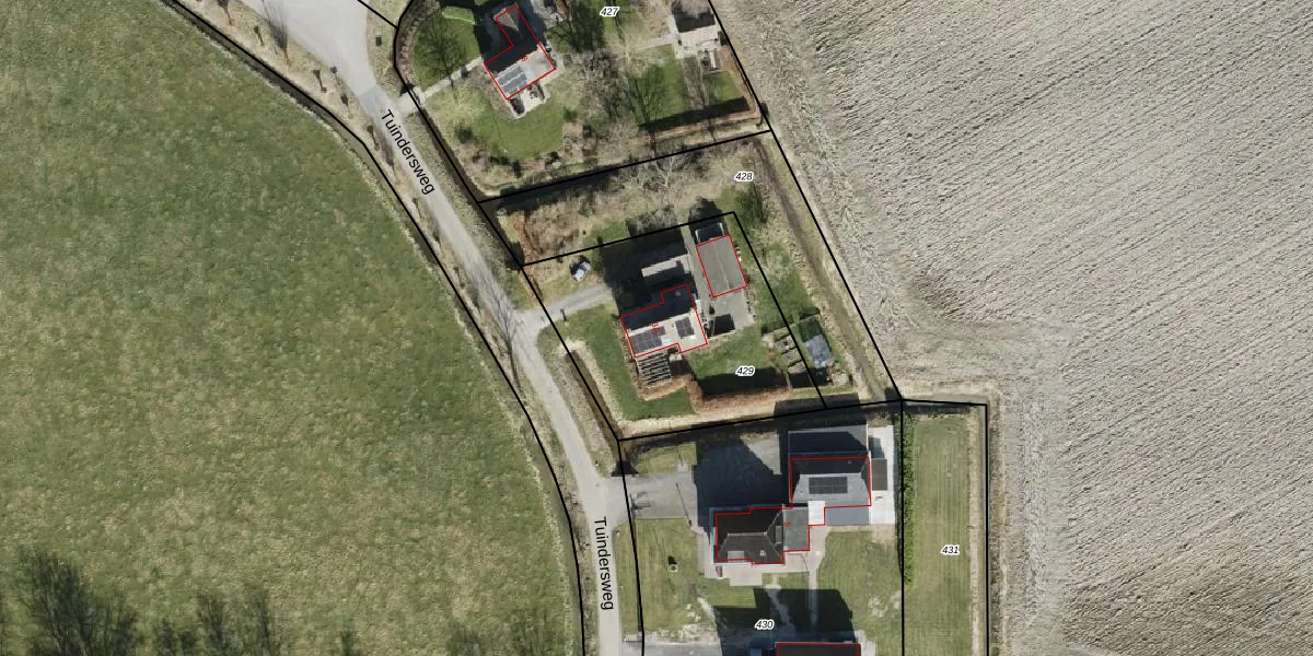 Tuindersweg 3-A is gelegen op kadastraal perceel ZAN00G429. Deze kadastrale aanduiding is uniek en wordt gebruikt door het Kadaster om eigendomsrechten en andere zakelijke rechten vast te leggen. Het perceel maakt onderdeel uit van de kadastrale gemeente 't Zandt.