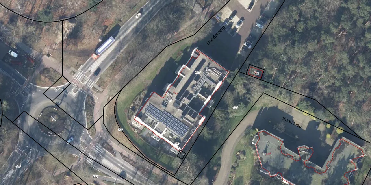 Het perceel waarop Donderberg 16 staat heeft een oppervlakte van 4140 m². Dit is een zeer groot perceel. De perceeloppervlakte wordt geregistreerd door het Kadaster. Gedetailleerde informatie over de maten van dit perceel kunt u vinden in het rapport Kadastrale kaart met maatvoering van Donderberg 16.