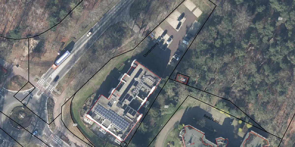 Het perceel waarop Donderberg 2 staat heeft een oppervlakte van 4140 m². Dit is een zeer groot perceel. De perceeloppervlakte wordt geregistreerd door het Kadaster. Gedetailleerde informatie over de maten van dit perceel kunt u vinden in het rapport Kadastrale kaart met maatvoering van Donderberg 2.