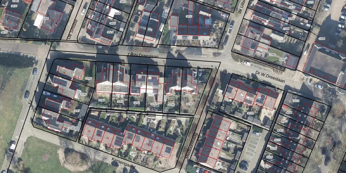 Gebruik de zoekbalk of klik op een perceel voor informatie over de adressen binnen dit perceel.