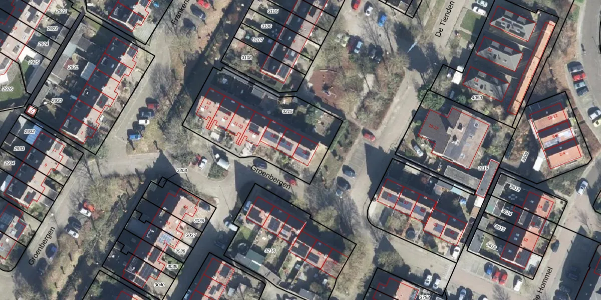 Groenbergen 33 is gelegen op kadastraal perceel LSM00D3215. Deze kadastrale aanduiding is uniek en wordt gebruikt door het Kadaster om eigendomsrechten en andere zakelijke rechten vast te leggen. Het perceel maakt onderdeel uit van de kadastrale gemeente Leersum.