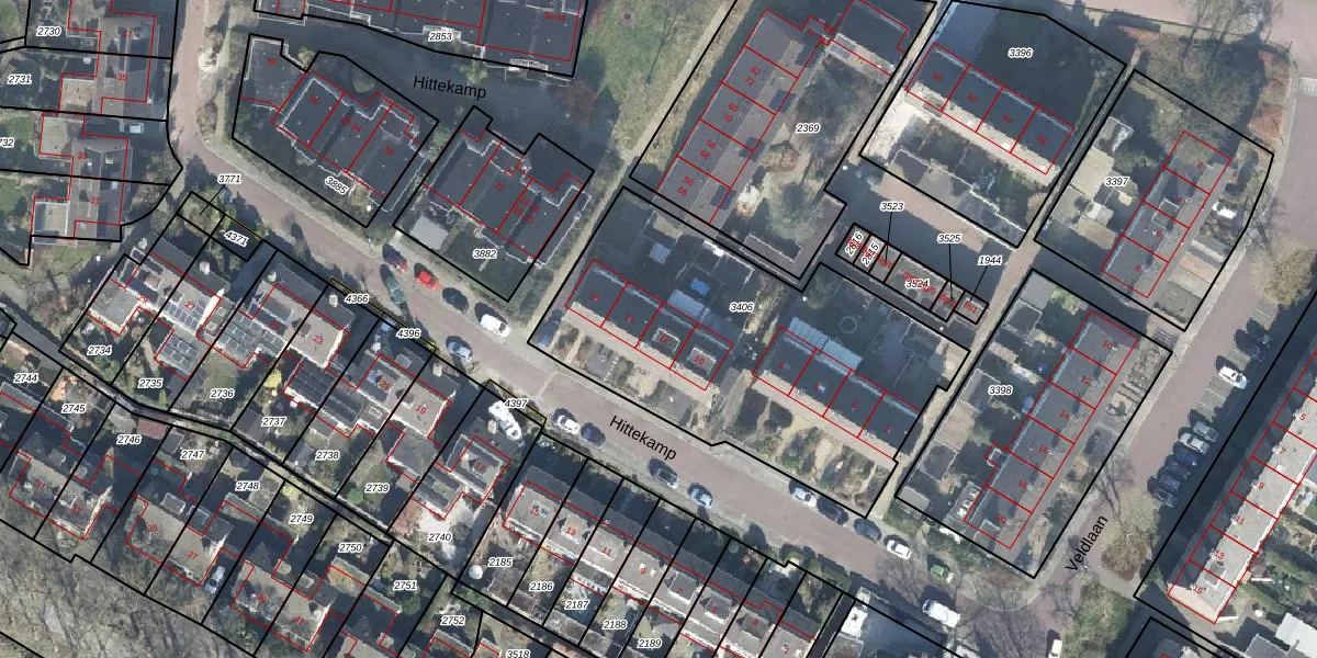 Het perceel waarop Hittekamp 12 staat heeft een oppervlakte van 1641 m². Dit is een zeer groot perceel. De perceeloppervlakte wordt geregistreerd door het Kadaster. Gedetailleerde informatie over de maten van dit perceel kunt u vinden in het rapport Kadastrale kaart met maatvoering van Hittekamp 12.