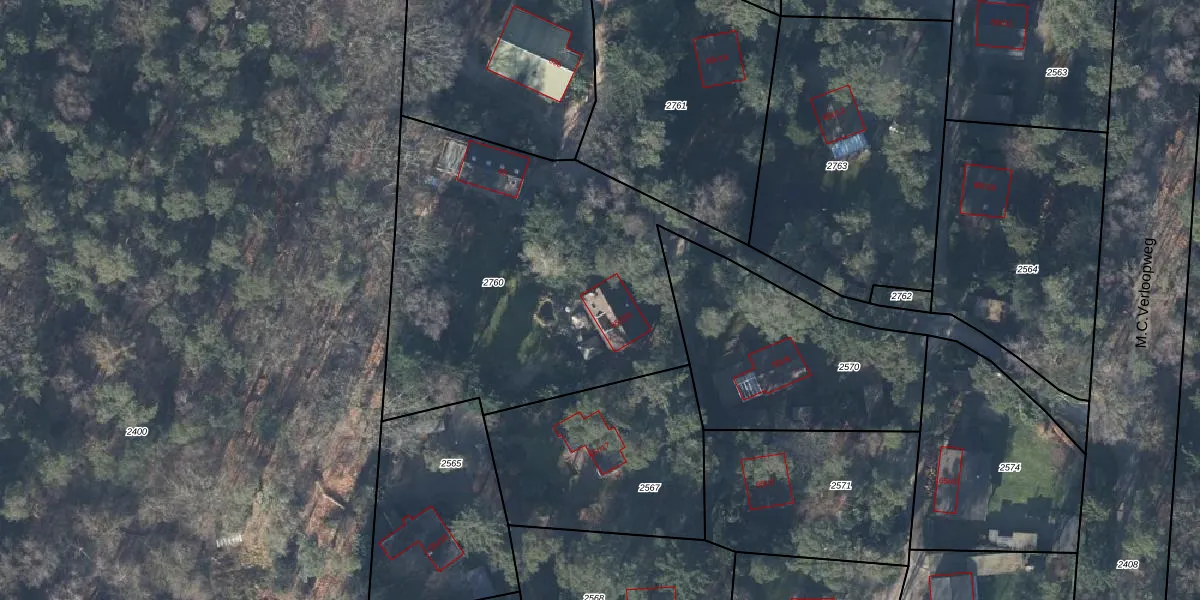 Het perceel waarop M.C.Verloopweg 65-r-20 staat heeft een oppervlakte van 2195 m². Dit is een zeer groot perceel. De perceeloppervlakte wordt geregistreerd door het Kadaster. Gedetailleerde informatie over de maten van dit perceel kunt u vinden in het rapport Kadastrale kaart met maatvoering van M.C.Verloopweg 65-r-20.