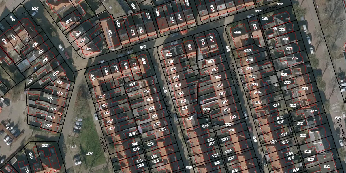 Het perceel waarop 2e Koestraat 30 staat heeft een oppervlakte van 81 m². Dit is een klein perceel. De perceeloppervlakte wordt geregistreerd door het Kadaster. Gedetailleerde informatie over de maten van dit perceel kunt u vinden in het rapport Kadastrale kaart met maatvoering van 2e Koestraat 30.