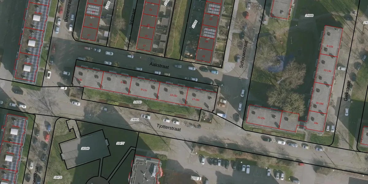Aakstraat 15 is gelegen op kadastraal perceel LWD00G14990. Deze kadastrale aanduiding is uniek en wordt gebruikt door het Kadaster om eigendomsrechten en andere zakelijke rechten vast te leggen. Het perceel maakt onderdeel uit van de kadastrale gemeente Leeuwarden.