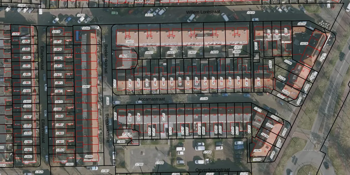 Accamastraat 13 is gelegen op kadastraal perceel LWD00G18060. Deze kadastrale aanduiding is uniek en wordt gebruikt door het Kadaster om eigendomsrechten en andere zakelijke rechten vast te leggen. Het perceel maakt onderdeel uit van de kadastrale gemeente Leeuwarden.