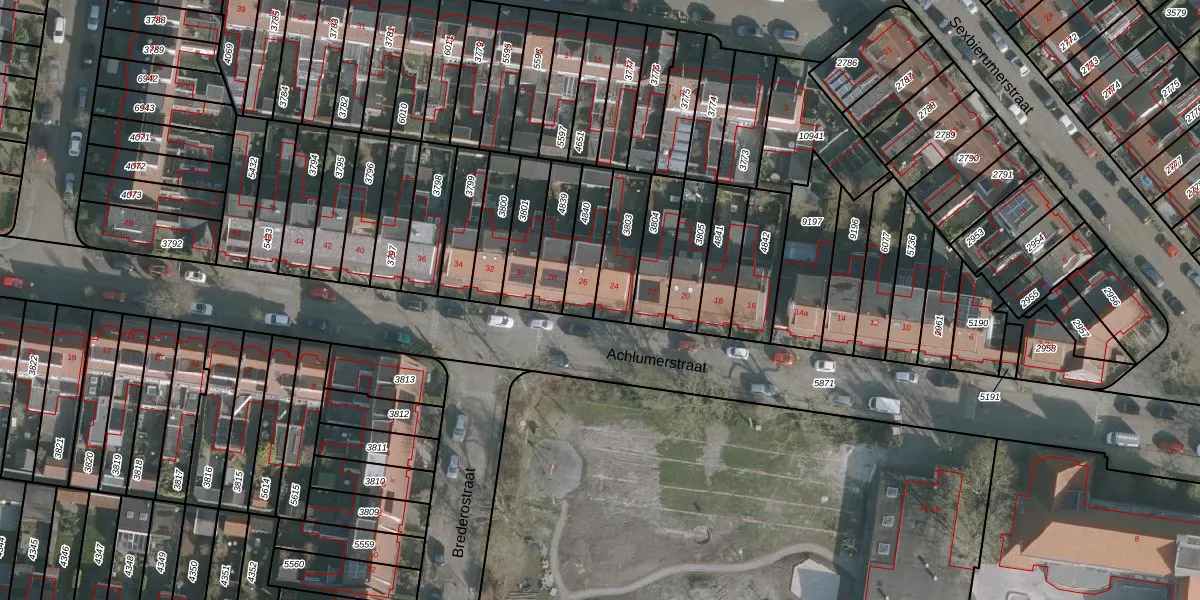 Het perceel waarop Achlumerstraat 24 staat heeft een oppervlakte van 155 m². Dit is een middelgroot perceel. De perceeloppervlakte wordt geregistreerd door het Kadaster. Gedetailleerde informatie over de maten van dit perceel kunt u vinden in het rapport Kadastrale kaart met maatvoering van Achlumerstraat 24.