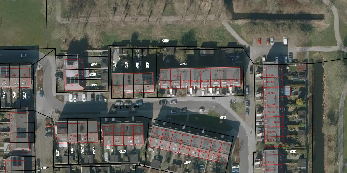 Aggemastate 151 is gelegen op kadastraal perceel LWD00K4509. Deze kadastrale aanduiding is uniek en wordt gebruikt door het Kadaster om eigendomsrechten en andere zakelijke rechten vast te leggen. Het perceel maakt onderdeel uit van de kadastrale gemeente Leeuwarden.