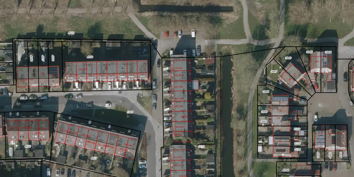Het perceel waarop Aggemastate 189 staat heeft een oppervlakte van 3297 m². Dit is een zeer groot perceel. De perceeloppervlakte wordt geregistreerd door het Kadaster. Gedetailleerde informatie over de maten van dit perceel kunt u vinden in het rapport Kadastrale kaart met maatvoering van Aggemastate 189.