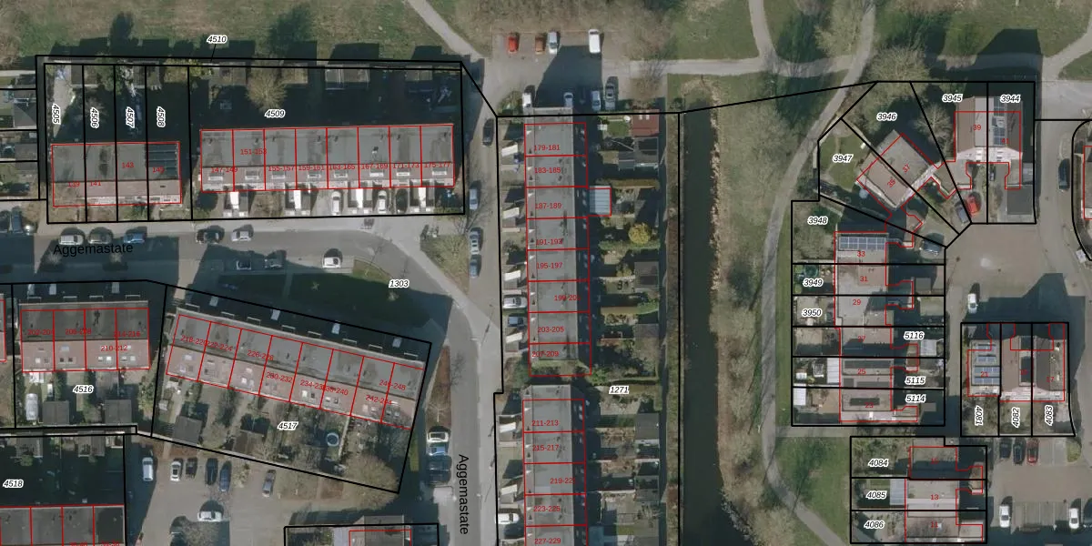 Het perceel waarop Aggemastate 197 staat heeft een oppervlakte van 3297 m². Dit is een zeer groot perceel. De perceeloppervlakte wordt geregistreerd door het Kadaster. Gedetailleerde informatie over de maten van dit perceel kunt u vinden in het rapport Kadastrale kaart met maatvoering van Aggemastate 197.