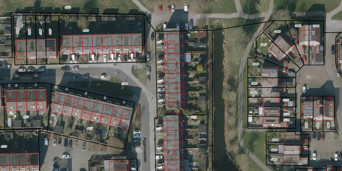Aggemastate 201 is gelegen op kadastraal perceel LWD00K1271. Deze kadastrale aanduiding is uniek en wordt gebruikt door het Kadaster om eigendomsrechten en andere zakelijke rechten vast te leggen. Het perceel maakt onderdeel uit van de kadastrale gemeente Leeuwarden.