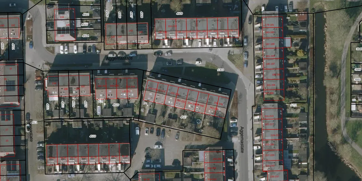 Aggemastate 230 is gelegen op kadastraal perceel LWD00K4517. Deze kadastrale aanduiding is uniek en wordt gebruikt door het Kadaster om eigendomsrechten en andere zakelijke rechten vast te leggen. Het perceel maakt onderdeel uit van de kadastrale gemeente Leeuwarden.