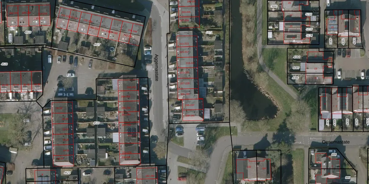 Het perceel waarop Aggemastate 233 staat heeft een oppervlakte van 3297 m². Dit is een zeer groot perceel. De perceeloppervlakte wordt geregistreerd door het Kadaster. Gedetailleerde informatie over de maten van dit perceel kunt u vinden in het rapport Kadastrale kaart met maatvoering van Aggemastate 233.