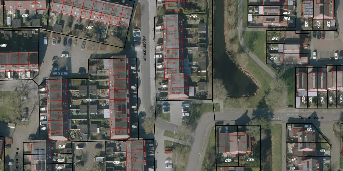 Het perceel waarop Aggemastate 235 staat heeft een oppervlakte van 3297 m². Dit is een zeer groot perceel. De perceeloppervlakte wordt geregistreerd door het Kadaster. Gedetailleerde informatie over de maten van dit perceel kunt u vinden in het rapport Kadastrale kaart met maatvoering van Aggemastate 235.