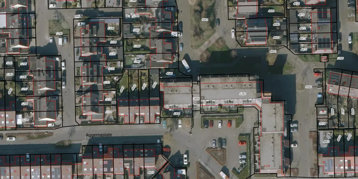 Het perceel waarop Aggemastate 26 staat heeft een oppervlakte van 397 m². Dit is een groot perceel. De perceeloppervlakte wordt geregistreerd door het Kadaster. Gedetailleerde informatie over de maten van dit perceel kunt u vinden in het rapport Kadastrale kaart met maatvoering van Aggemastate 26.