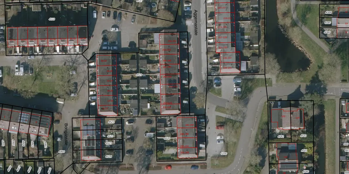 Het perceel waarop Aggemastate 272 staat heeft een oppervlakte van 2425 m². Dit is een zeer groot perceel. De perceeloppervlakte wordt geregistreerd door het Kadaster. Gedetailleerde informatie over de maten van dit perceel kunt u vinden in het rapport Kadastrale kaart met maatvoering van Aggemastate 272.
