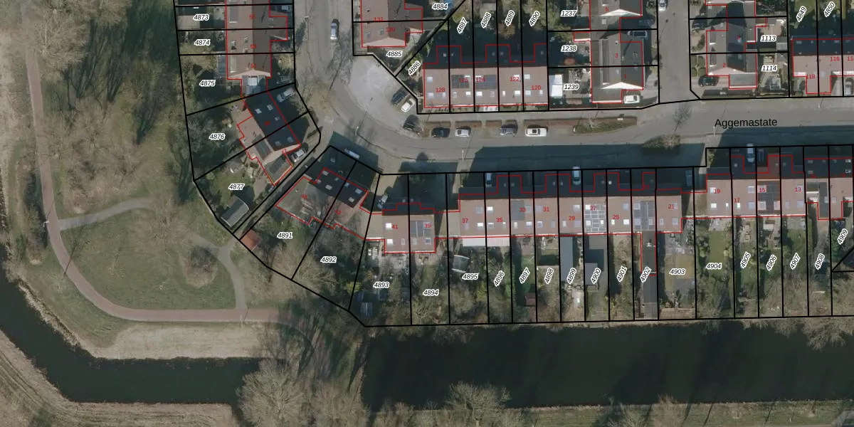 Aggemastate 39 is gelegen op kadastraal perceel LWD00K4894. Deze kadastrale aanduiding is uniek en wordt gebruikt door het Kadaster om eigendomsrechten en andere zakelijke rechten vast te leggen. Het perceel maakt onderdeel uit van de kadastrale gemeente Leeuwarden.
