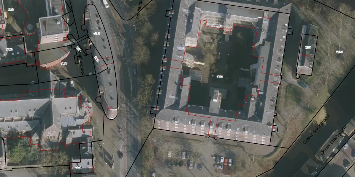 Het adres is gelegen op perceel 5071 in de sectie B en de kadastrale gemeente Leeuwarden. De kadastrale aanduiding is aldus LWD00-B-5071. De gemiddelde perceeloppervlakte in de kadastrale gemeente Leeuwarden is 1524,56 m². Dit perceel is met zijn 5032 m² dus groter dan gemiddeld. Het grootste perceel in de kadastrale gemeente is 1,54 km². Het kleinste perceel heeft een oppervlakte van 0 m². Er zijn 165 adressen aanwezig op het perceel. De huidige grenzen van het perceel zijn digitaal in de Basisregistratie Kadaster (BRK) geregistreerd op 15-01-1998.