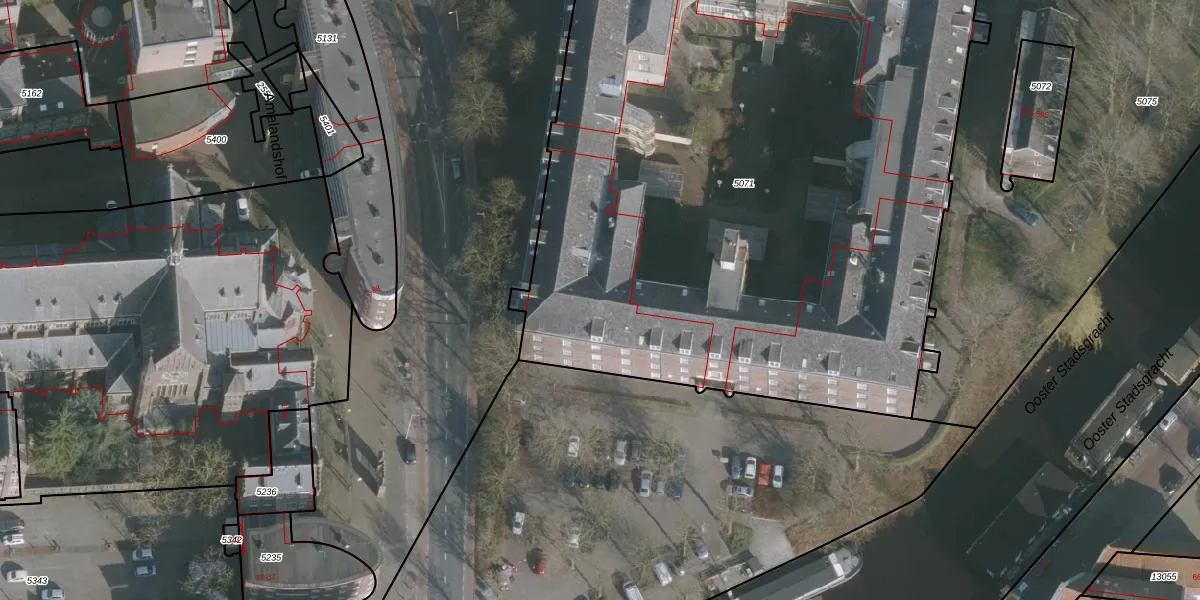 Het perceel waarop het adres ligt is LWD00-B-5071. De afkorting 'LWD00' staat voor kadastrale gemeente Leeuwarden. De oppervlakte van het perceel is 5032 m². Dat is groter dan gemiddeld in Leeuwarden, waar de gemiddelde perceeloppervlakte op 1524,67 m² ligt. Het grootste perceel in de kadastrale gemeente is 1,54 km². Het kleinste perceel heeft een oppervlakte van 0 m². Er zijn 165 adressen aanwezig op het perceel. In de Basisregistratie Kadaster (BRK) werden de grenzen van het perceel geregistreerd op 15-01-1998.