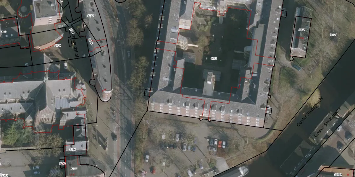 Het adres is gelegen op perceel 5071 in de sectie B en de kadastrale gemeente Leeuwarden. De kadastrale aanduiding is aldus LWD00-B-5071. Het perceel is met 5032 m² relatief groot. Het gemiddelde ligt in de kadastrale gemeente Leeuwarden op 1524,45 m². Het kleinste perceel in de kadastrale gemeente is 0 m² groot. De grootste perceeloppervlakte is 1,54 km². Op het perceel liggen in totaal 165 adressen. De huidige grenzen van het perceel zijn digitaal in de Basisregistratie Kadaster (BRK) geregistreerd op 15-01-1998.